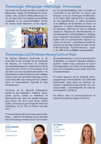 Schwerpunkt an der Universitätskinderklinik Bochum. und Atemwegsfehlbildungen. Ein weiterer Schwerpunkt